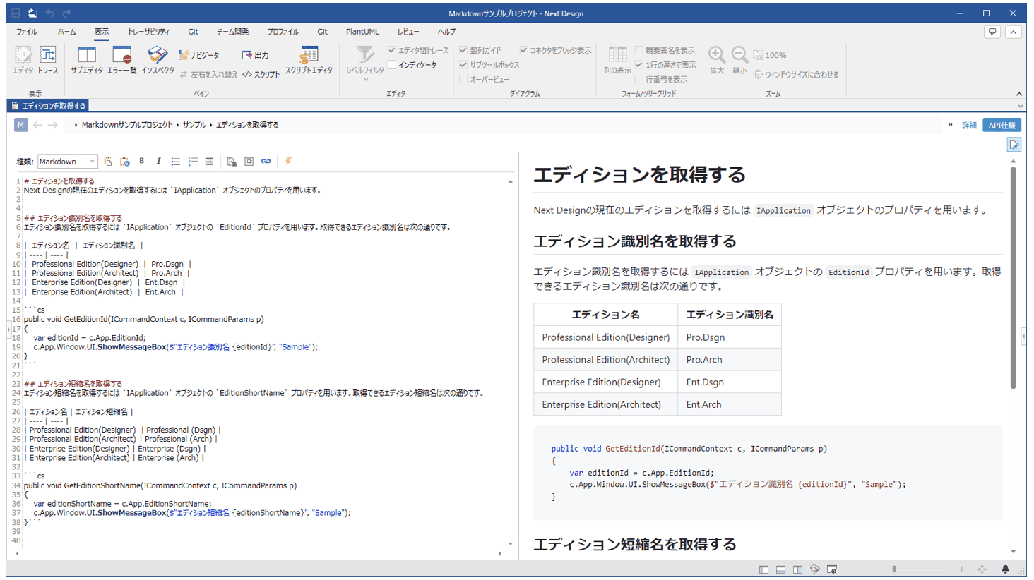 Next Design の機能性や適用例をご確認いただけるサンプルプロジェクトです。メタモデルやビュー定義の参考例としてもご利用ください。
