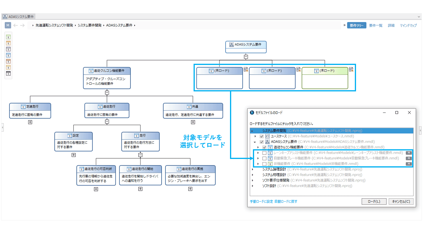 部分ロード機能の使い勝手を向上。エディタ内にある未ロードのモデルを一括ロードするなど、必要なモデルを素早くロードできます。